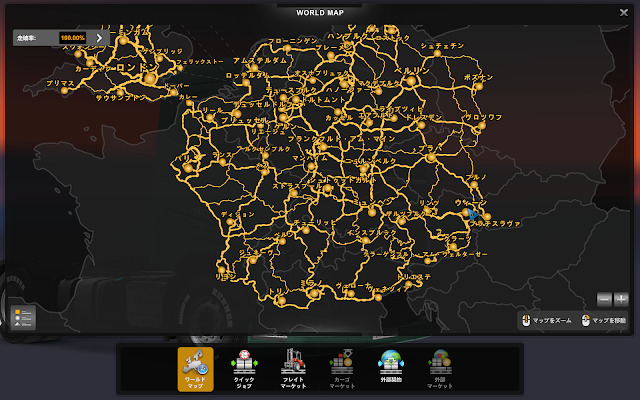 EuroTruckSimulator2でずっと放置していた100%走破をついにちゃんと挑戦中。