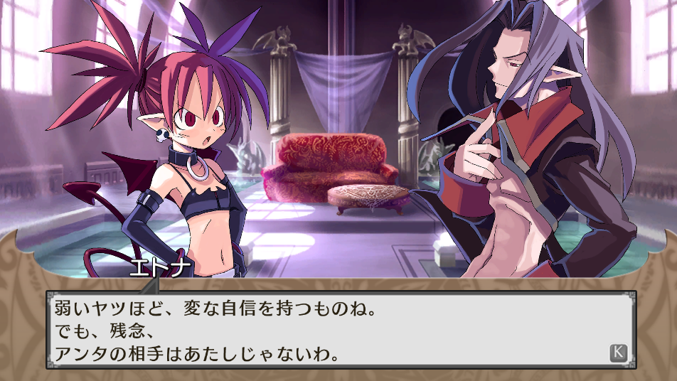 雑魚はほっとけというエトナに、秘密のスイーツを奪われるかもしれないというプリニー。