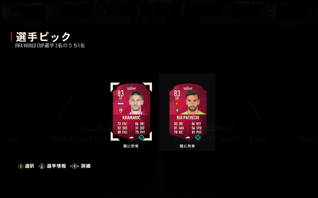 ワールドカップ選手ピックはダブりで捨てるだけ。